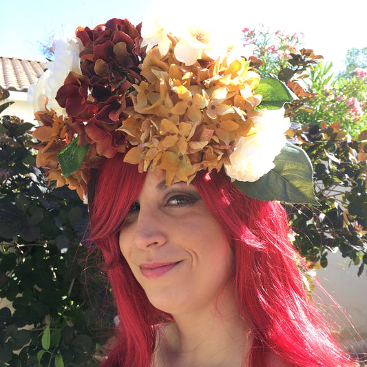 XL Fantasy Wreath - Burgundy & peach w/ white hydrangeas