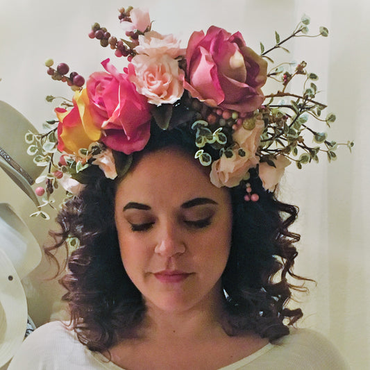 XL Fantasy Wreath - Pale Pink and Off White Flowers with Horns